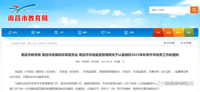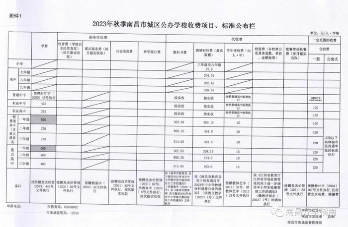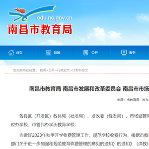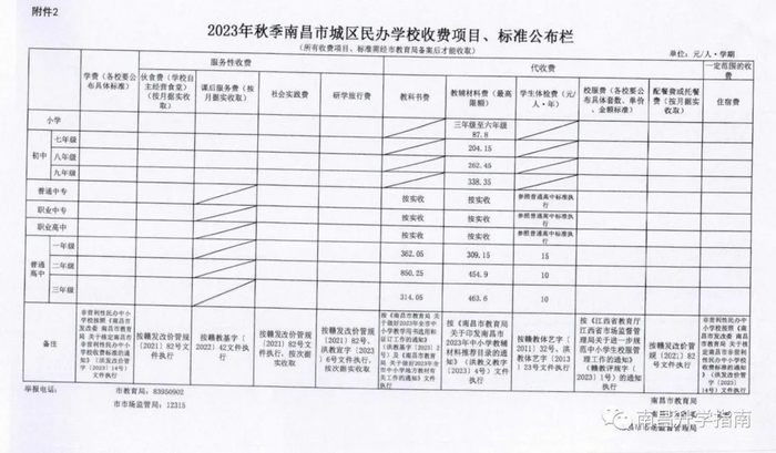 另据江西发布了解,南昌市公布了2023年秋季城区公办、民办学校收费项目、标准,具体如下: