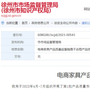 江苏省徐州市市场监管局:20批次电商家具产品抽查不合格