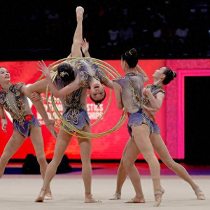 此前进行的与奥运资格相关的集体全能比拼中,中国队3带2球项目排名第二、5圈排名第三,以总分70.050分夺得集体全能银牌,该奥运项目同样创造了中国艺术体操队征战世锦赛的历史最佳战绩。