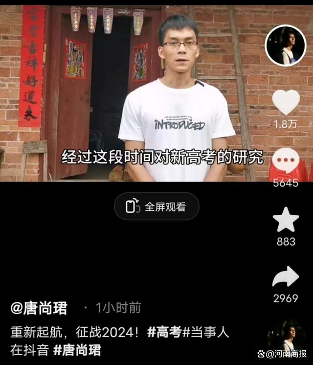 “高考钉子户”唐尚珺宣布继续复读,好友称其计划去衡水考察学校