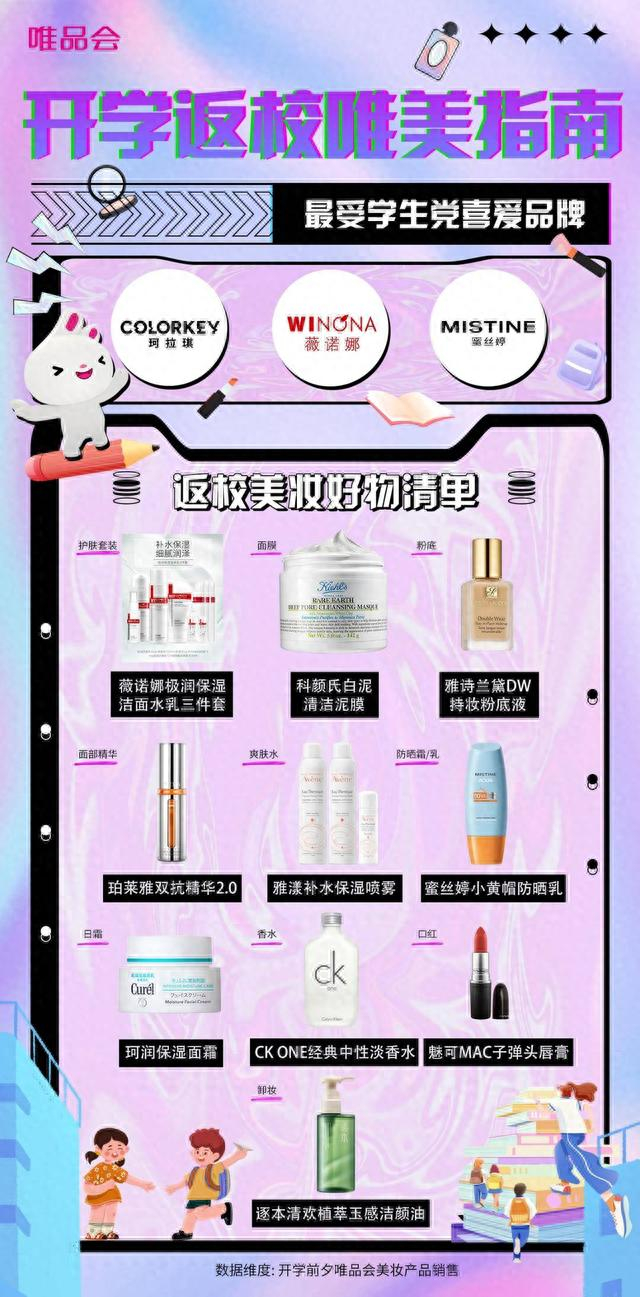 为满足学生们多元化、个性化的美妆护肤消费需求,近日,唯品会发布《开学返校唯美指南》(简称“返校指南”),上榜产品均基于平台上真实用户数据,并由平台明星买手团队结合当季消费热点、专业产品测评,从近千个品牌、近十万款热销单品中选出,从多方面为学生党推荐高品质、高适配度的美妆护肤产品。
