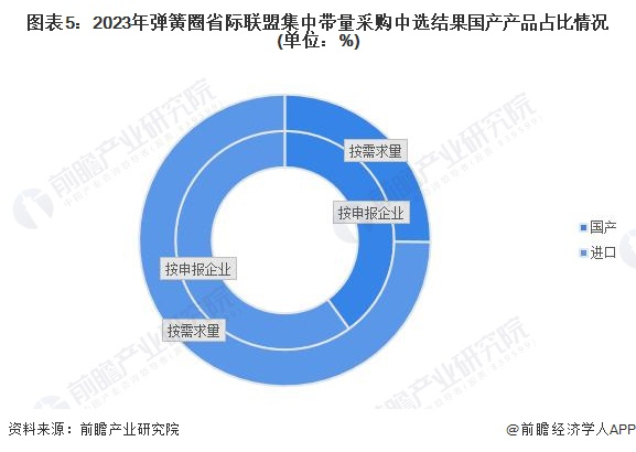 2023年5月,吉林省医疗保障局发布《弹簧圈省际联盟集中带量采购中选结果》,20款产品中选,其中国产产品8款占比40%,从医疗机构需求量来看,国产产品占比约为25.2%。