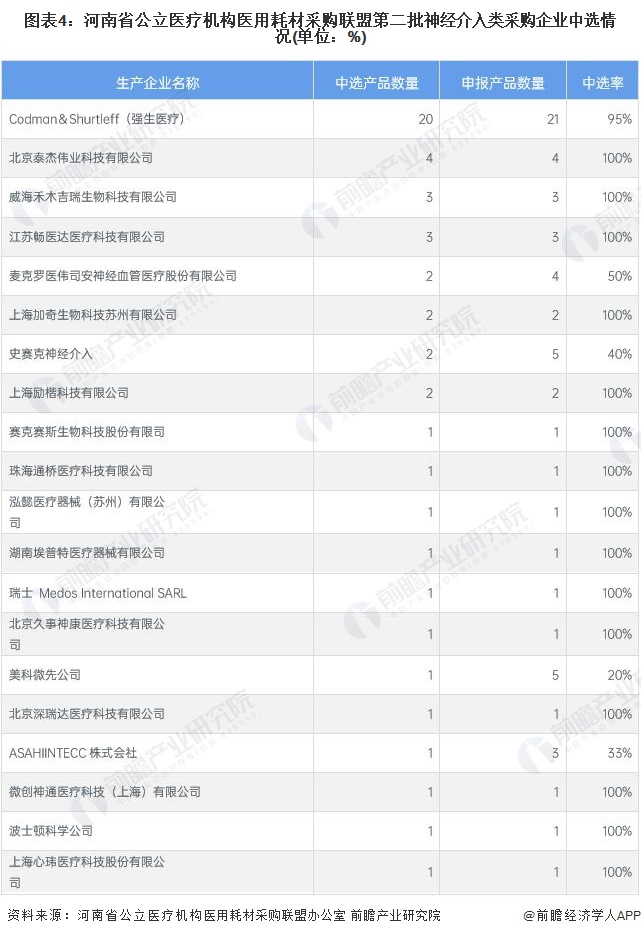 各项集采政策发布以来,介入类高值医疗耗材逐渐被纳入集采,2023年4月,河南省公立医疗机构医用耗材采购联盟办公室发布《第二批神经介入类采购中选结果》,其中,国产进口产品23款中选,占比达45.1%;泰杰伟业、加奇生物、励楷科技等国产企业均为100%中选率。