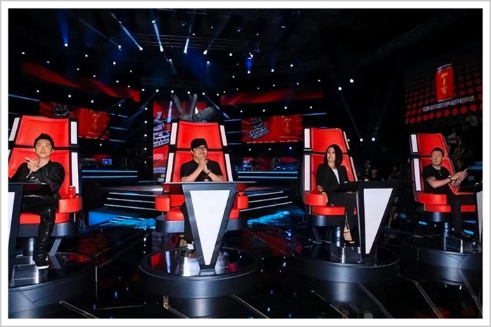 他们弄来了原版转椅,配上了华少当主持;找来了零点乐队贝斯手王笑东加盟的乐队、操盘过北京奥运会的调音师金少刚,一出手就是四大导师:那英、刘欢、杨坤、庾澄庆。