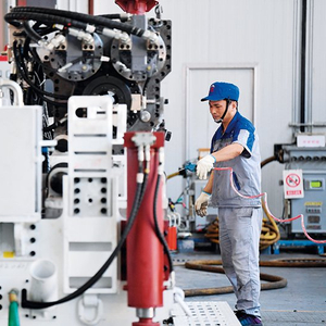 工人准备对智能定向钻机进行性能调试(2022 年 6 月 17 日摄)李一博摄 / 本刊