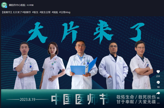 中国医师节刚过去,有医院拍了宣传片,原意当然是希望大家更了解医生的真实生活。