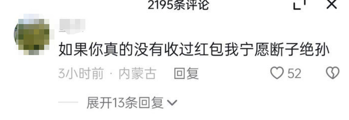 上来就放狠话,“你没收过红包我断子绝孙”。