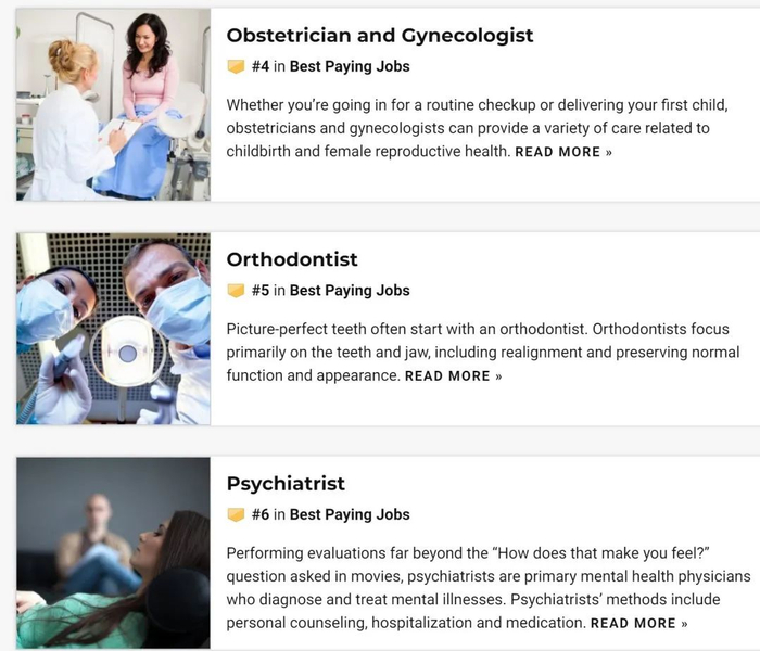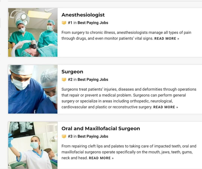 US NEWS曾经统计出美国收入排名前25的行业,前十都被各种医疗岗位包揽了,再往后才是什么程序员、律师、工程师、飞行员。