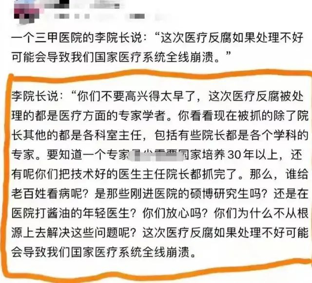 觉得国家抓这么多院长啊主任啊,把能看病的人都抓走了,谁来给老百姓看病呢?