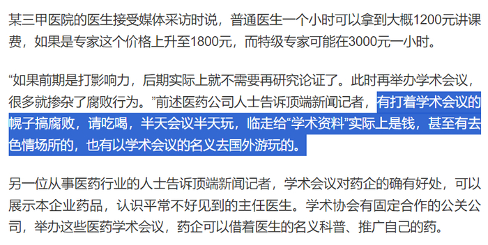 浅层的门道涉及到各种学术会议——在医疗反腐的大幕被拉起后,它们被紧急叫停。