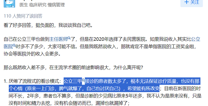 最近几年也有医生从公立往私立医院跳,就是因为相对来说,活更少钱更多。