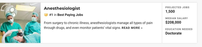 他们的麻醉师平均一年能拿20万美元。注意这里是中位薪酬,还不是那些极端案例。