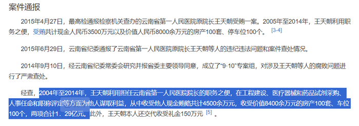 九年前的云南,云南省第一人民医院院长王天朝被查出来名下房产超过100套,还配有100个停车位。人称“双百院长”。