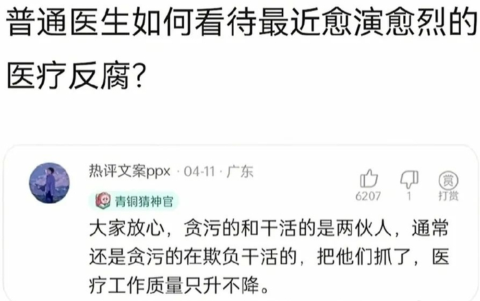 所以这次医疗反腐来势汹汹,多数网友们看了都在叫好,觉得大快人心。