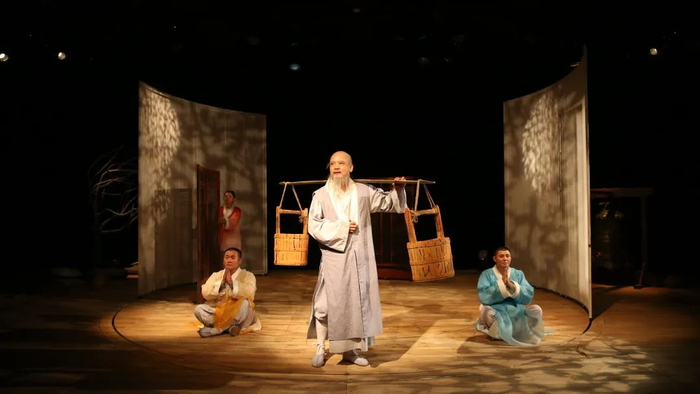 《三个和尚》是中国儿艺“2014中华优秀传统文化年”系列儿童剧中的又一力作,是中华优秀传统故事与当代审美的完美结合。在故事创作方面,加入“老和尚”这一角色,丰富人物关系并加深人物间情感。在舞台呈现方面,主要以演员肢体语言作为叙事方式,将现代舞和戏曲风格相结合,同时注入武术元素搭配炫目的多媒体舞台效果。让孩子们更懂得团结、互助和“人心齐,泰山移”的道理。