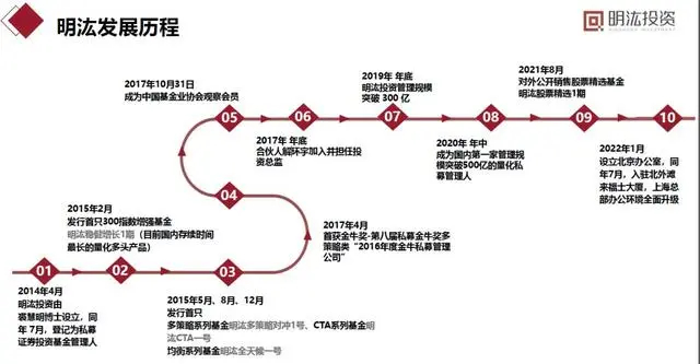 尽管明汯投资不是国内最早的量化投资机构,但是近几年来,其异军突起并成为了国内顶级量化私募,2015年底,明汯投资管理规模突破30亿元,但截止2019年底其规模便突破300亿元。2020年年中,明汯投资成为国内首家管理规模突破500亿元的量化私募管理人。