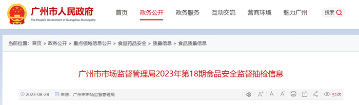 广州市市场监督管理局2023年第18期食品安全监督抽检信息