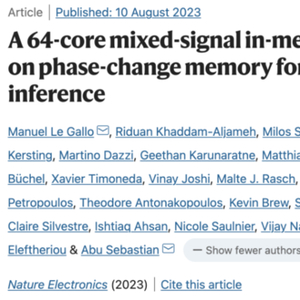 该芯片由64个模拟内存计算内核组成,每个内核包含256×256的交叉条阵突触单元。