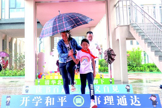 踏着“红毯”进入校园,接过老师手中装着糖果的福袋;穿过“求知门”感受新生“开笔礼”;领取“新生入学礼”佩戴校徽……8月28日,烟台市中小学在雨中迎来2023秋季新学期。