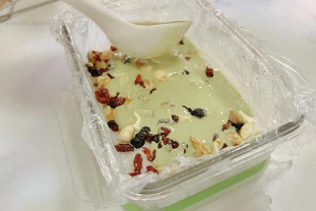 抹茶粉3克、蔓越莓核桃等坚果适量、椰蓉适量
