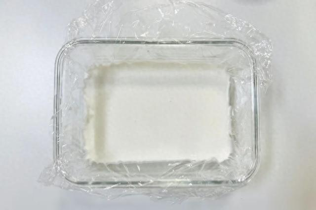 1.将糯米粉、牛奶、糖拌匀,取一半面糊倒入铺好保鲜膜的碗里。