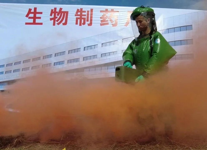 演练假设某地工业园区发生不明原因爆炸,该工业园存在核化生危险品泄漏风险,该部立即派出机动保障力量赴现场展开处置,并根据现场课目设置情况进行现场侦检、伤员洗消与救治、样本检测等处置操作。