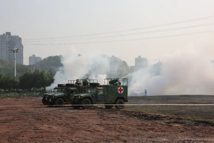 本次演练结合任务地域环境和核化生泄露事件特点,从难从严布设贴合度高、代入感强的训练场景,组织全要素、多课目连贯演练,重点检验在应急处置过程中人装协同、临战处置、现场侦检、环境洗消等内容,全面检验官兵应急应战能力。