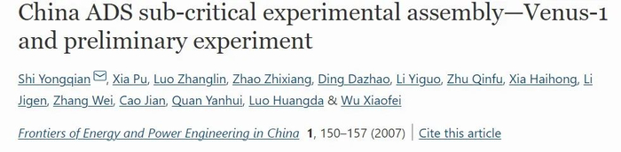 《中国能源与动力工程前沿》(Frontiers of Energy and Power Engineering in China)对启明星I号实验的论文截图