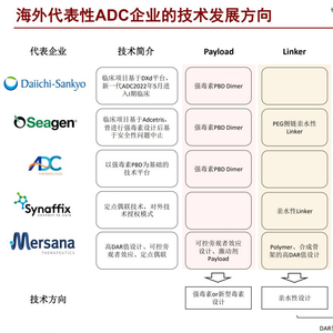 Payload尝试新型毒素或强毒素、Linker亲水性设计、定点偶联,这是海外主流ADC企业的探索,代表着ADC的技术发展方向。在技术上不能掉队或走偏,这是对国内ADC企业的基础要求。