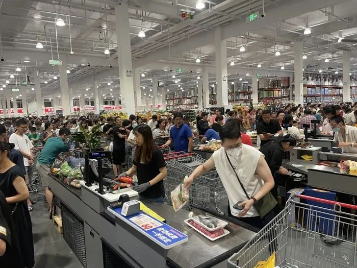 根据《潮新闻客户端》记者的报道,上午10点左右,Costco开市客杭州店的人流量达到了顶峰,付款区也已人满为患。总共22个收银台,每个都至少有10至20个排队买单的队伍。