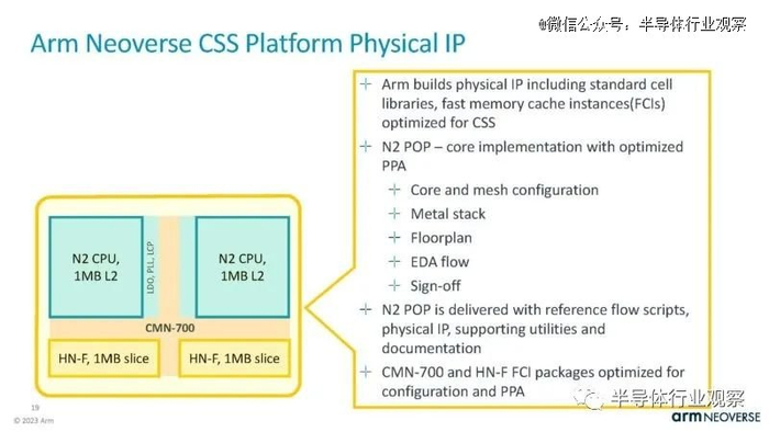 在 Hot Chips 2023 上,Arm 展示了一种实现Neoverse N2 内核的新方法。Arm Neoverse 计算子系统或 Neoverse CSS ,该系统不仅仅授权 N2 核心 IP,还允许客户购买更大的 IP 模块以投入设计。