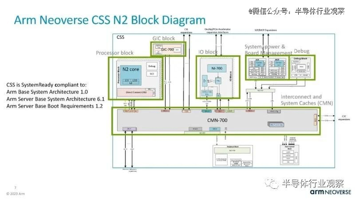 这是框图。Arm 在这里使用 CMN-700 将不同的组件连接在一起。CSS 开箱即用,符合 Arm 标准,这是有道理的。