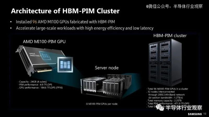 显然,三星和 AMD 的 MI100 带有 HBM-PIM 而不仅仅是标准 PIM,因此它可以构建一个集群,这样它就可以拥有听起来像 12 节点 8 加速器的集群来尝试新内存。