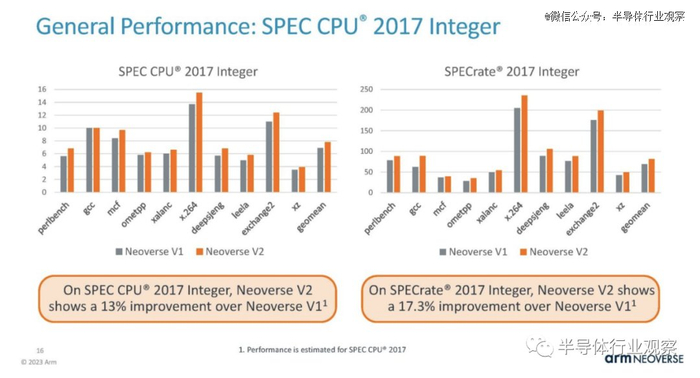 Arm 正在展示其整数性能。在预简报电话会议上,分析师询问了两个估计结果之间的差异,因为右侧图表标记为“SPECrate”,但都没有标记为基础或峰值。Arm 无法证实这一点。我们*的猜测是,左图是基础图,右图是峰值图,但这只是猜测,因为 Arm 无法确认他们所显示的内容。