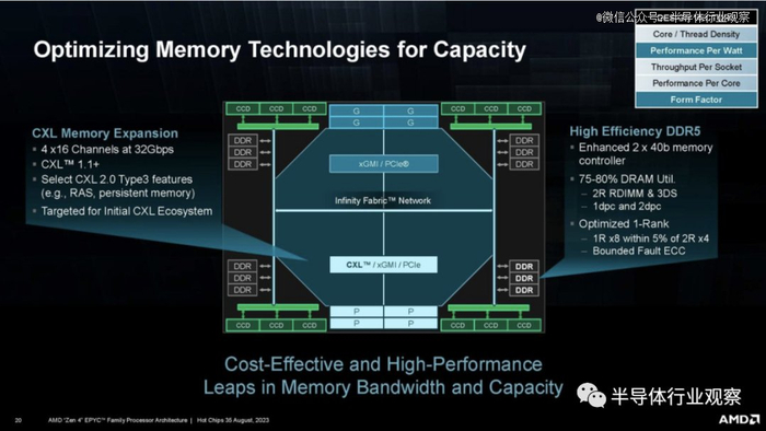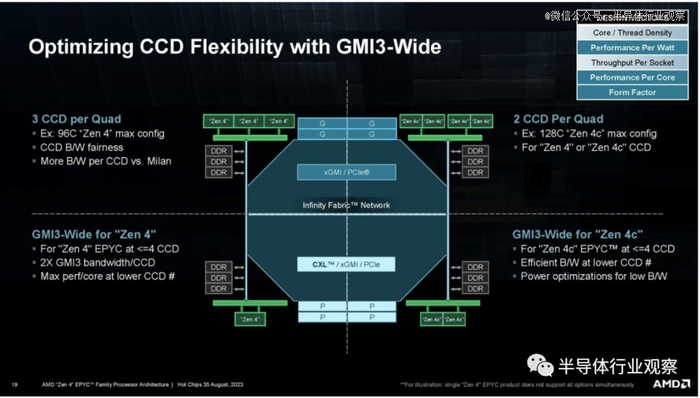 Zen 4c 则为Bergamo带来了更加紧凑的 Zen 4 核心。即便如此,AMD 仍然专注于制造大型 CPU。在Hot Chips上,他们就展示了一种低端解决方案。