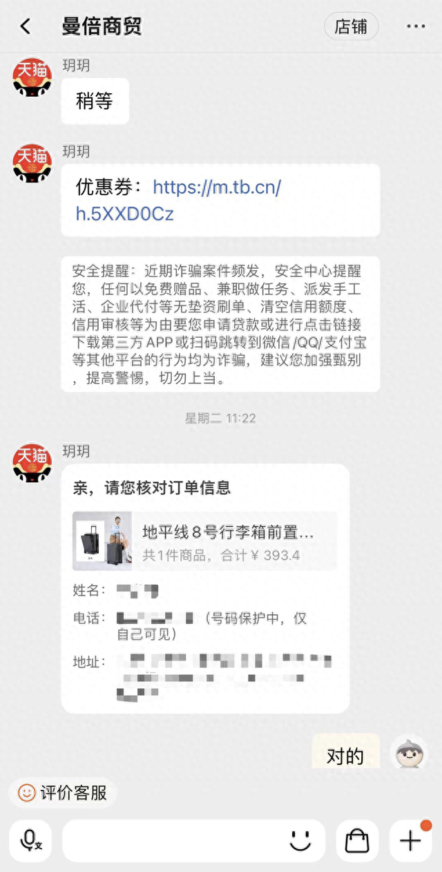 消费者通过网店客服发送的外链付费疑遭诈骗,淘宝:建议报警