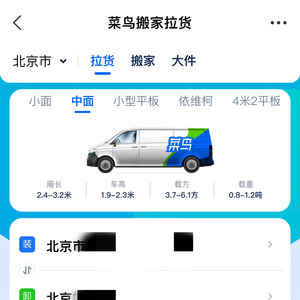接入货拉拉、快狗打车等 菜鸟上线搬家拉货服务