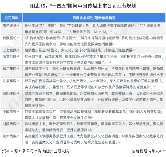 “十四五”期间,传媒代表性企业在年报中披露其公司战略、经营规划等,其具体业务规划如下: