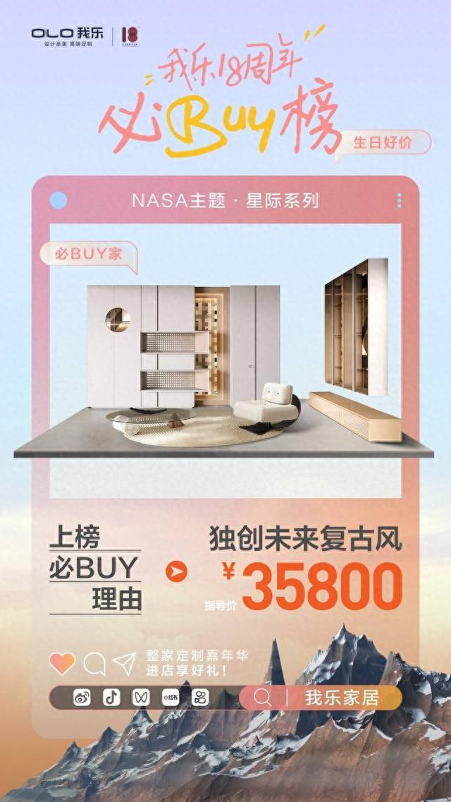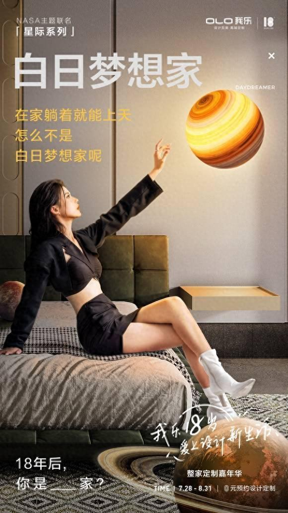 今天是我乐家居18岁的生日,每个人18岁时都对新生活有着各种想象。但你18岁时,有想过和NASA一起住进太空里吗?你想过把菲拉格慕的浪漫搬进家中吗?你想过在家感受野外驾驶乐趣吗?要是18年前,这谁都不敢想,但是现在,未来已来,所有你想过和没敢想的,我乐家居现在就可以用设计定制帮你实现!