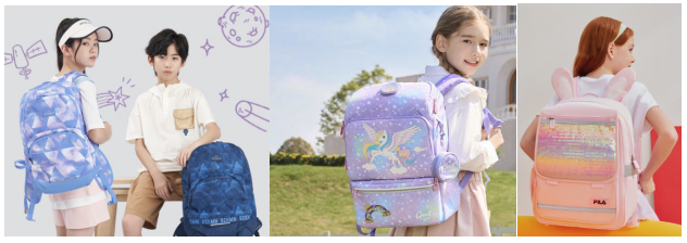 在升级减负功能的同时,考虑到儿童对书包颜值的需求,京东在开学季期间带来了多款色彩更为明亮、外形设计更为个性化的护脊书包,如融入独角兽、美人鱼等梦幻图案的Gmt for kids护脊书包等。
