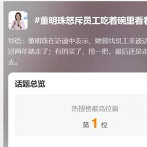 据上观新闻报道,8月28日晚间,“董明珠怒斥员工吃着碗里看着锅里”登上微博热搜第一,引发网友激烈讨论。当天董明珠在直播访谈中表示,她曾找员工谈话,让他们持有格力股票,有的可能认为买这个没什么用,也许过两年就走了;有的买了,捞一把,最后还是走了。“有的人吃着碗里还看着锅里的,绝对不会允许他在格力待下去。”