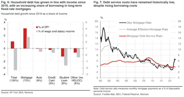 但野村认为,家庭资产负债表仍旧具有弹性,债务总额与可支配收入的比例与2019年持平,且抵押贷款的偿债成本仍处于历史低位可以继续支撑消费。