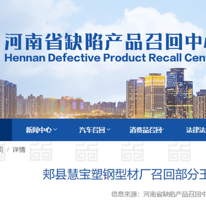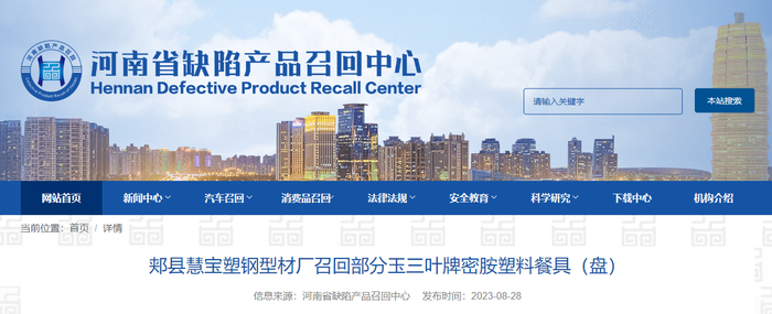 【河南】郏县慧宝塑钢型材厂召回部分玉三叶牌密胺塑料餐具(盘)