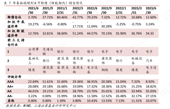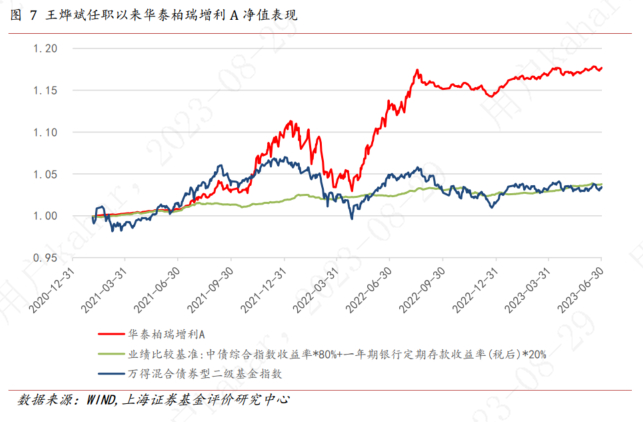 由王烨斌管理的另一基金华泰柏瑞信用增利A,在可转债投资策略上与华泰柏瑞增利A类似,两只基金在王烨斌任职以来风险收益特征类似,同样表现优异,区别在于作为一级债基,华泰柏瑞信用增利A并不进行股票配置。