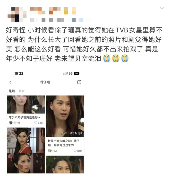 2000年后的港姐,星途最好的应该算是2004年的冠军徐子珊,虽然当时出道后被嫌弃颜值不够柔美,但演技到位,塑造出的一些亦正亦邪的角色令粉丝念念不忘,退圈后引得不少网友怀念。
