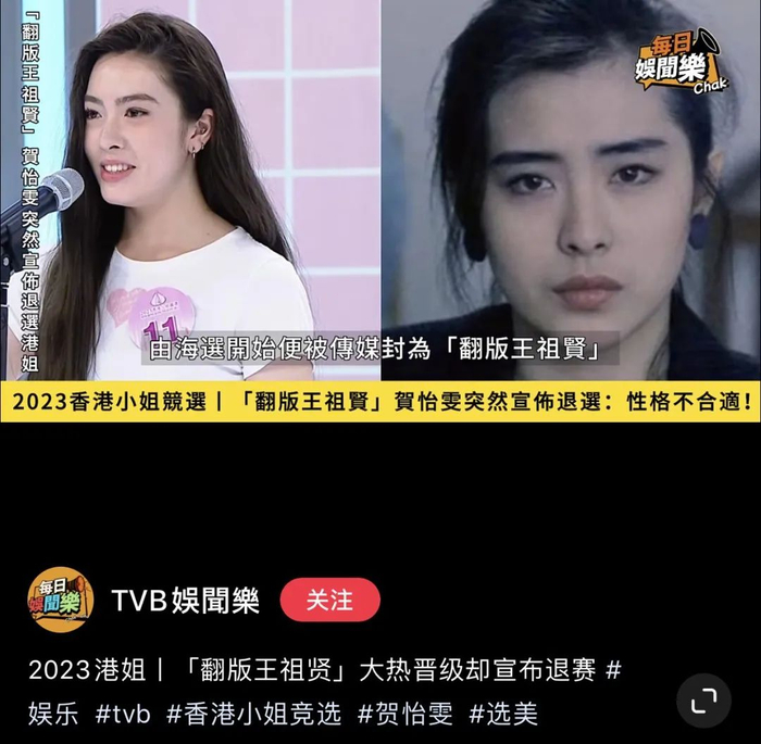 原本已经进入18强,却因为个人原因选择退赛的贺怡雯,从面试时期就被称为“翻版王祖贤”,但被贴上这个标签后,免不了遭到网友的质疑——