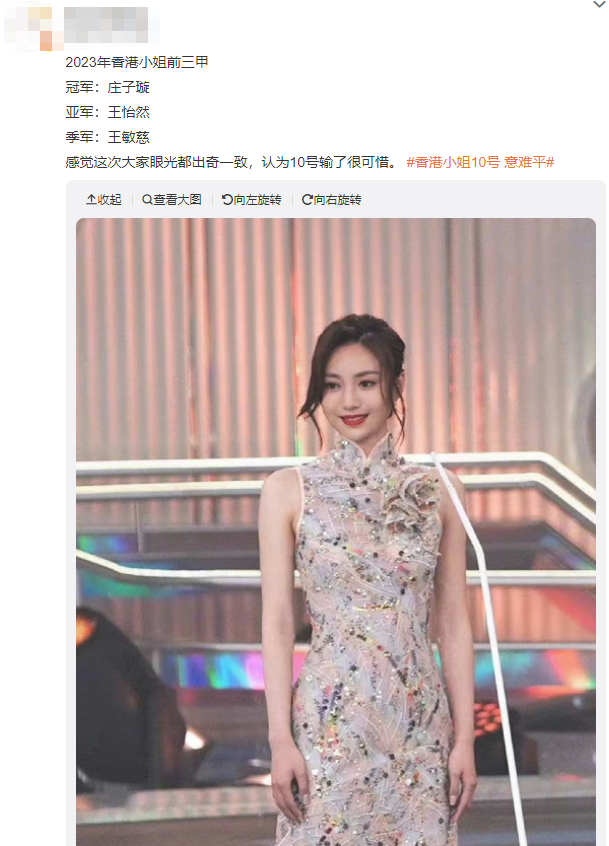 网友们心疼的10号选手陈霈琪是港大硕士,端庄大气、外形优越,有古早港姐内味儿,以至于#香港小姐10号 意难平#的词条冲上热搜。