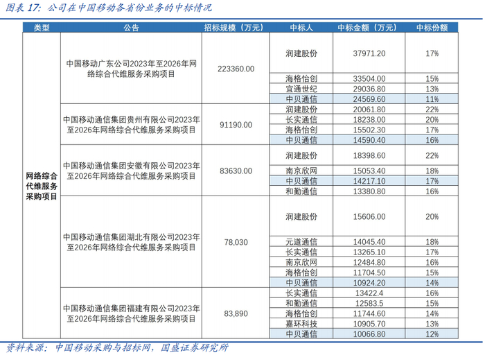 公司持续发展5G新基建业务,中标金额持续提升。公司传统业务运营稳中有升,截至2023年半年报,公司在运营商市场累计中标 14.3 亿元。其中,在中国移动综合代维全国集采中中标 7.4 亿元,在新增中标省份的同时,提升了原来在建省份的中标份额;与中国电信的合作范围进一步扩大,新增了山西、江苏的传统业务以及广东的智慧城市项目,铁塔业务新增山东、四川两省,并在北京、河北、河南、山西、湖北、浙江等地增加了市场份额。