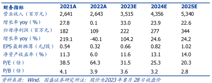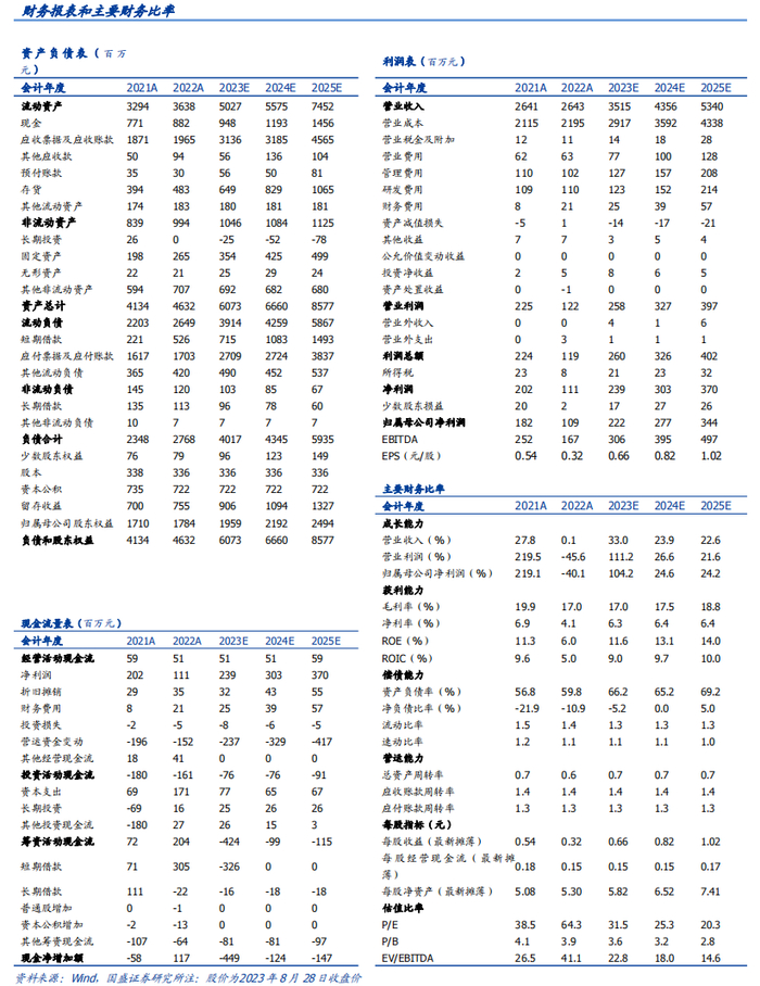 费用率:1)销售费用率:公司客户相对稳定,销售费用率变动较小,因此假设2023-2025年分别为2.2%/2.3%/2.4%。2)管理费用率:公司管理费用率也保持较为稳定趋势,假设2023-2025年分别为3.6%/3.6%/3.9%。3)研发费用率:公司研发投资集中在前期,新产品发布后研发费用有望逐步平稳,测算时假设2023-2025年分别为3.5%/3.48%/4.00%。