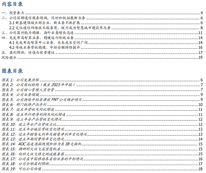 投资建议:我们预计公司2023-2025年收入为35.15/43.56/53.40亿元,归母净利润为2.22/2.77/3.44亿元,对应PE分别为32/25/20倍。公司是国内新基建领域头部企业,主业提供新型数字基础设施提供网络建设服务,同时布局新能源与智算赛道,未来伴随AI算力需求重要性不断提升,公司营收有望实现高速增长,首次覆盖,给予“增持”评级。